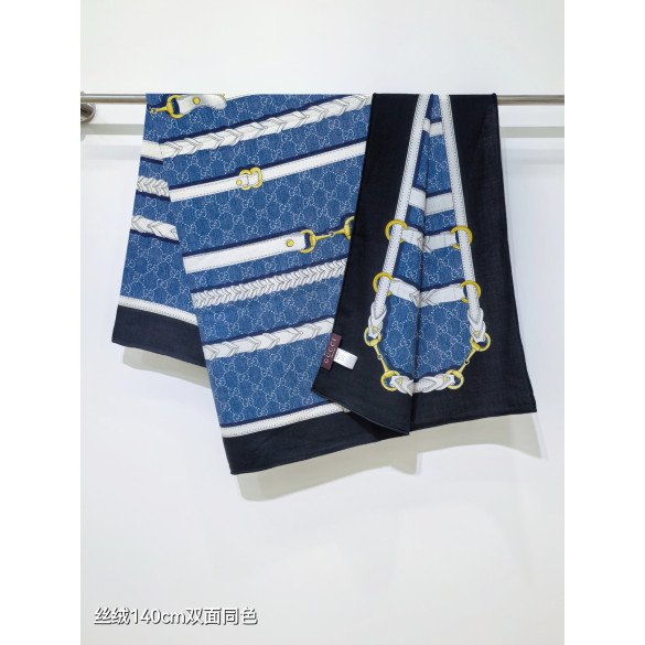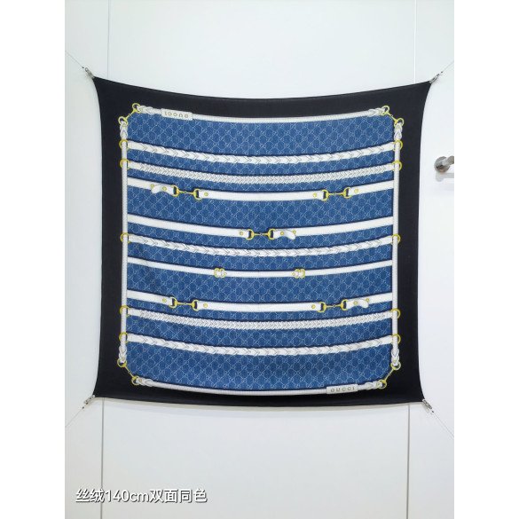구찌 GG 홀스빗 하네스 프린트 실크 울 숄