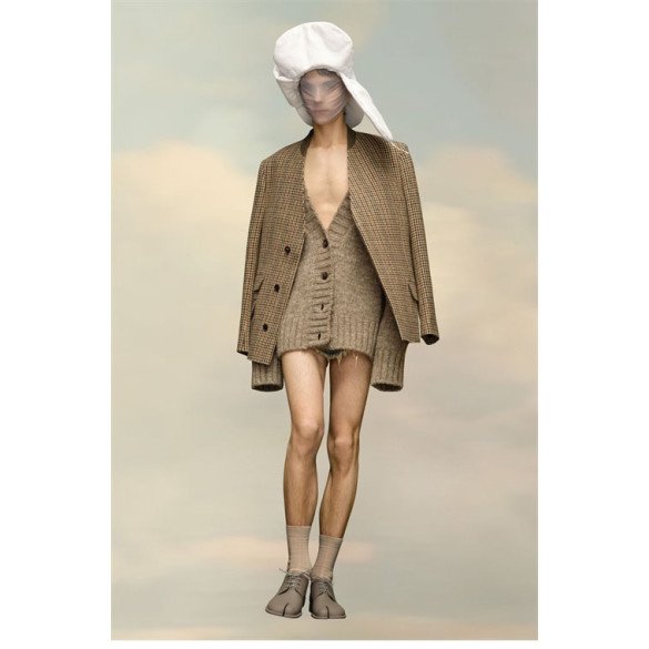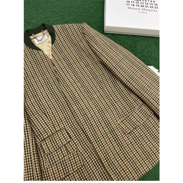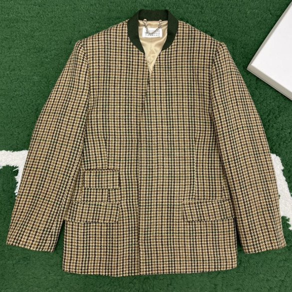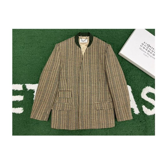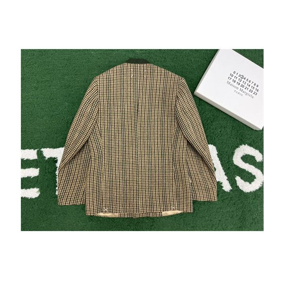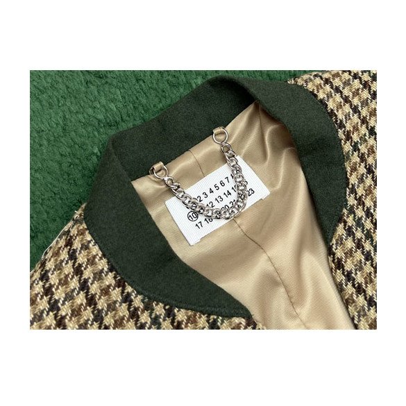 메종마르지엘라 체크 울 브이넥 히든 자켓