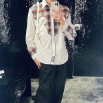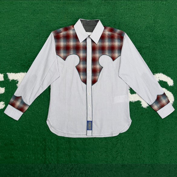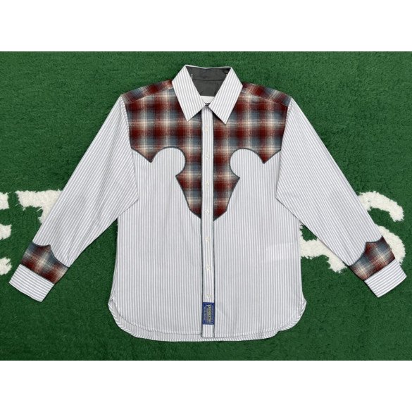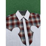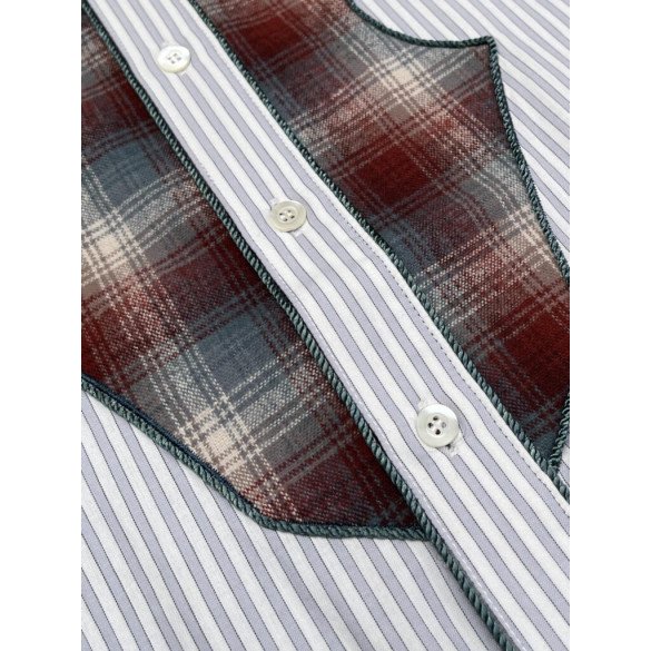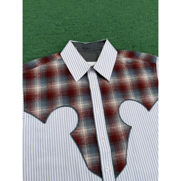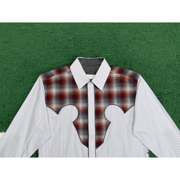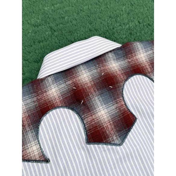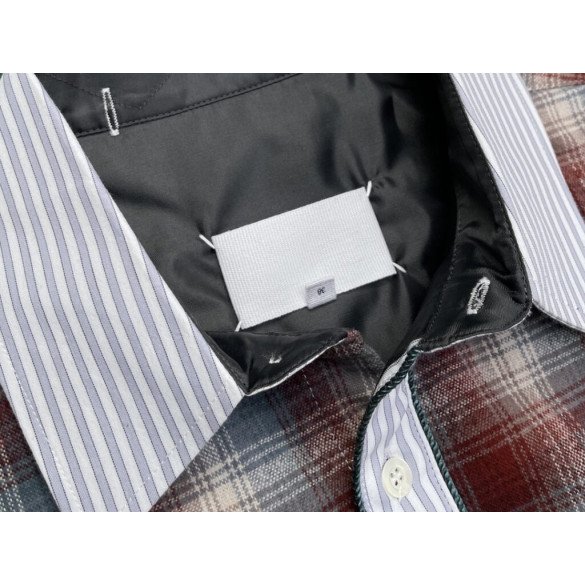 마르지엘라 그레이 & 브라운 코튼 체크 스트라이프 셔츠