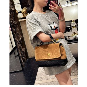 샤넬 25A 탑핸들 라지 플랩 백 스웨이드 골드 메탈
